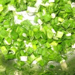 Din toate aceste ingrediente se formeaza un aluat elastic si care nu se lipeste de maini. Se lasa sa creasca, intr-un loc cald, cel putin 1 ora. Intre timp se toaca ceapa verde si mararul, se amesteca cu cele 3 linguri de ulei si se sareaza.