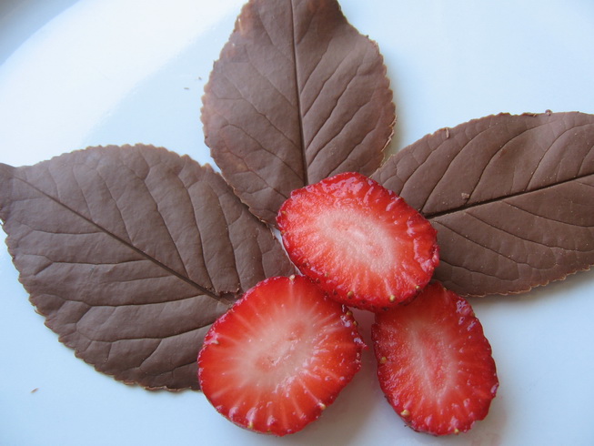 Se lasa la fel 10-15 min sa se usuce, dupa care se indeparteaza cu grija frunza si…gata…ati obtinut frunze de ciocolata.