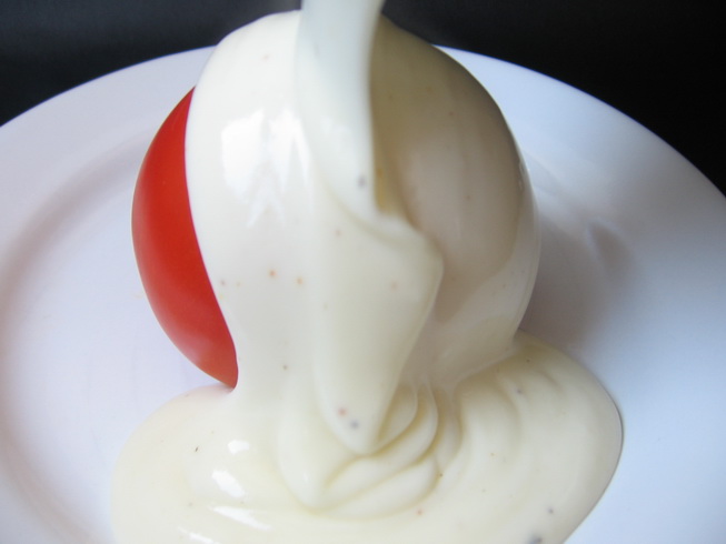 Ca sa va convingeti de cat de catifelat si cat de consistent este acest sos v-am facut o demonstratie cu o rosie. 😆