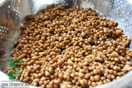 Se desfac conservele, toata lintea se pune intr-o sita si pret de cateva minute treceti lintea prin jeturi de pa rece pentru a o clati foarte bine, dupa care se scurge foarte bine.