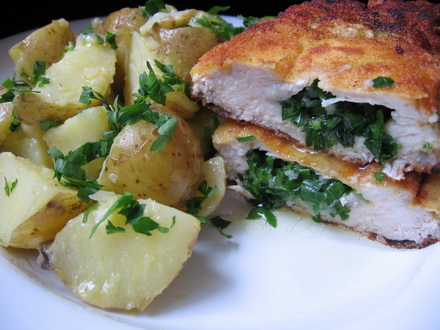Inspirata fiind de salata de cartofi de ieri, azi am pregatit un piept de pui Kiev. Desi datorita denumirii date dupa capitala Ucrainei aveti tendinta sa credeti ca este un preparat de origine ucrainian, de fapt este inventat de un francez si a primit denumirea aceasta la New York. In concluzie un adevarat curcubeu de culturi si origini.